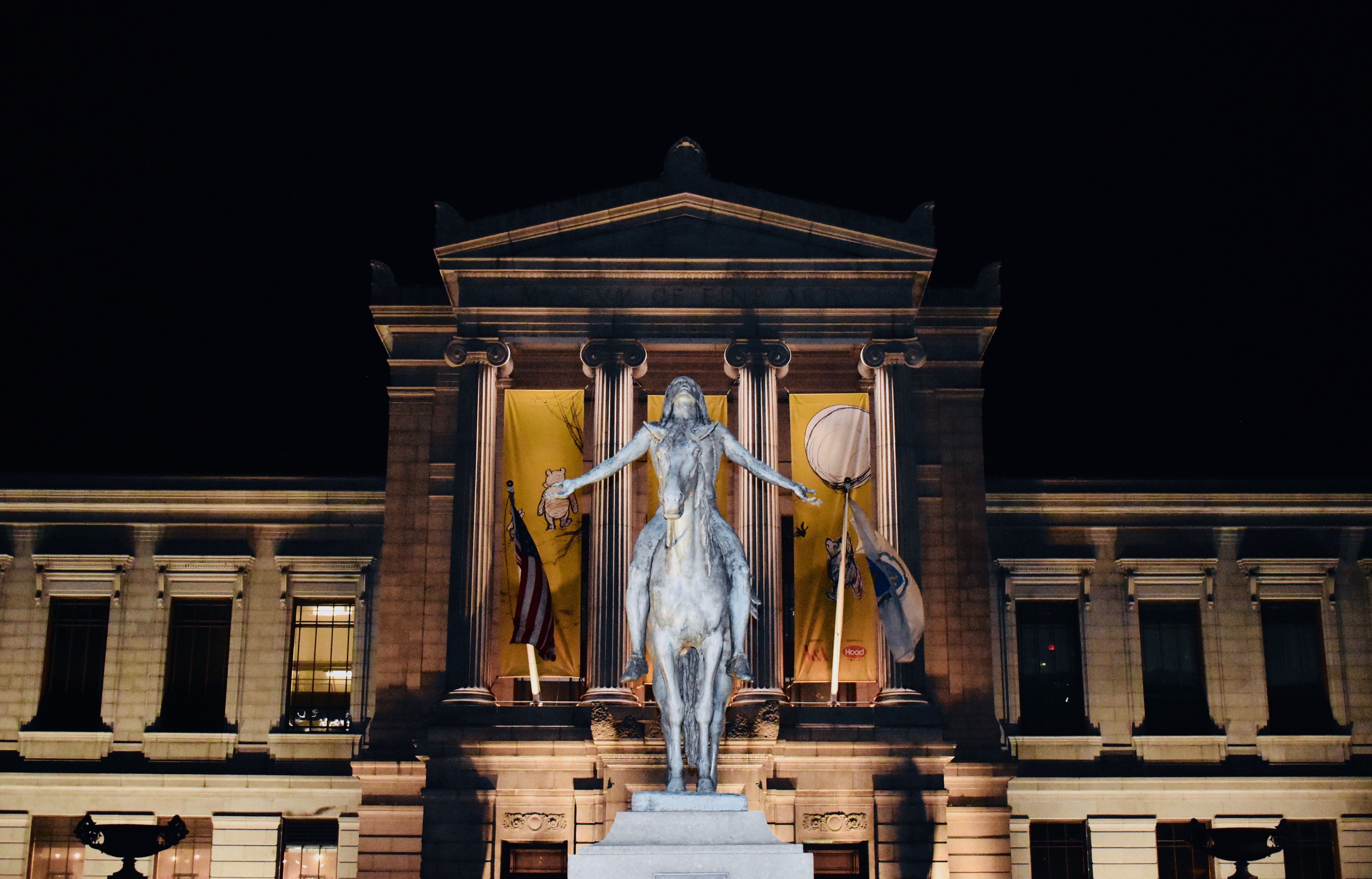 We hopped off the Green line of the MBTA at Kenmore/Lower Roxbury. We walked along the Northeastern campus, where alumni like Jane Curtain, Beverly Johnson, Nat Hentoff and the late, great Patrice O’Neal (probably) did their thing. We walked past the exhortations of a softball game in late fall. We doubled back across Huntington Ave through the park. We walked up to Boylston St. and stood in the shadow of Fenway, where Yaz, Teddy Ballgame and Big Papi have become notorious. We walked to the Citizen Public House and Oyster Bar. We walked back to the Museum of Fine Arts, where sculptor Cyrus Dallin’s Appeal to the Great Spirit…appealed to me.
